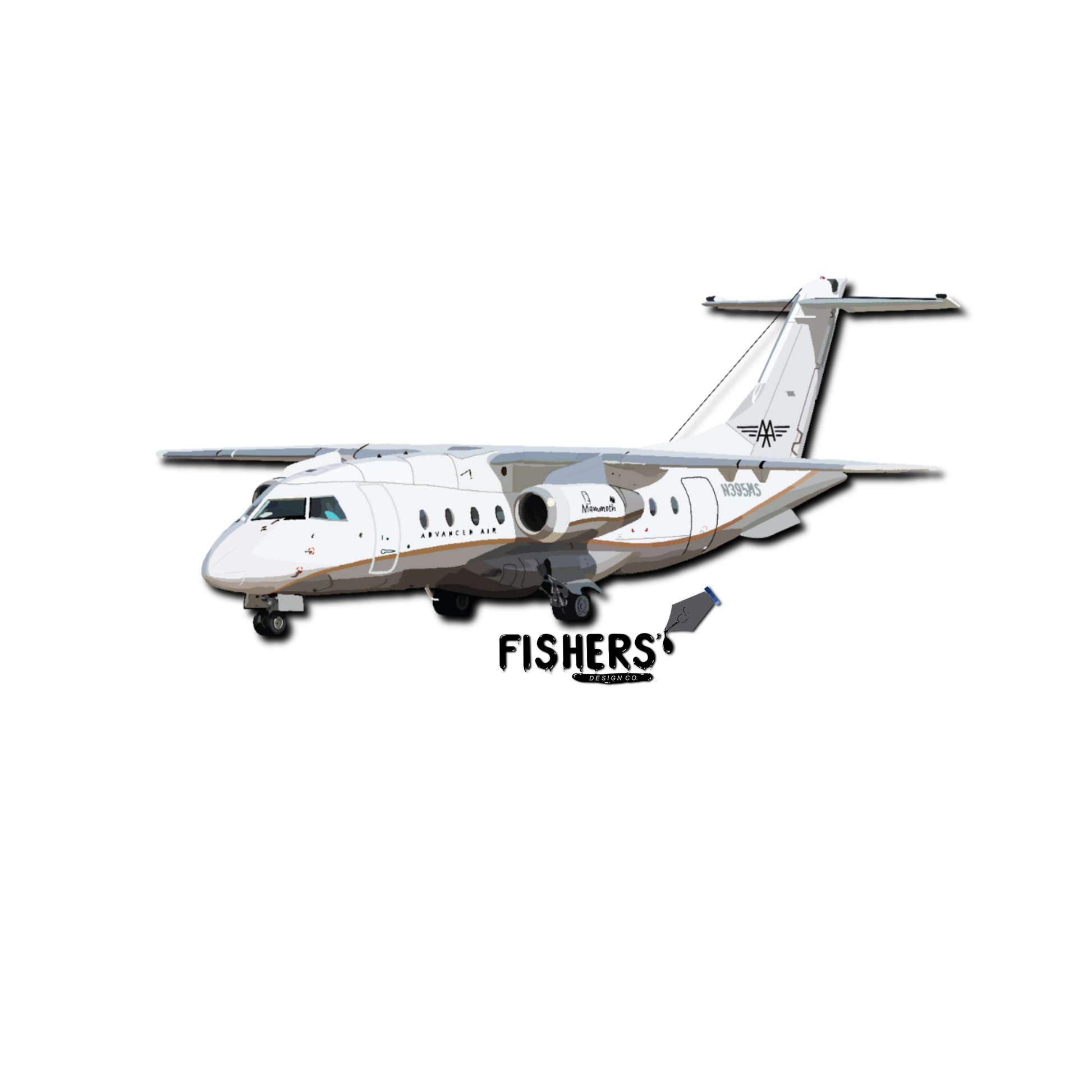 Introducing the Dornier 328 painted in the Advanced Air (AA) livery. This design is printed as a 3 inch die cut sticker.