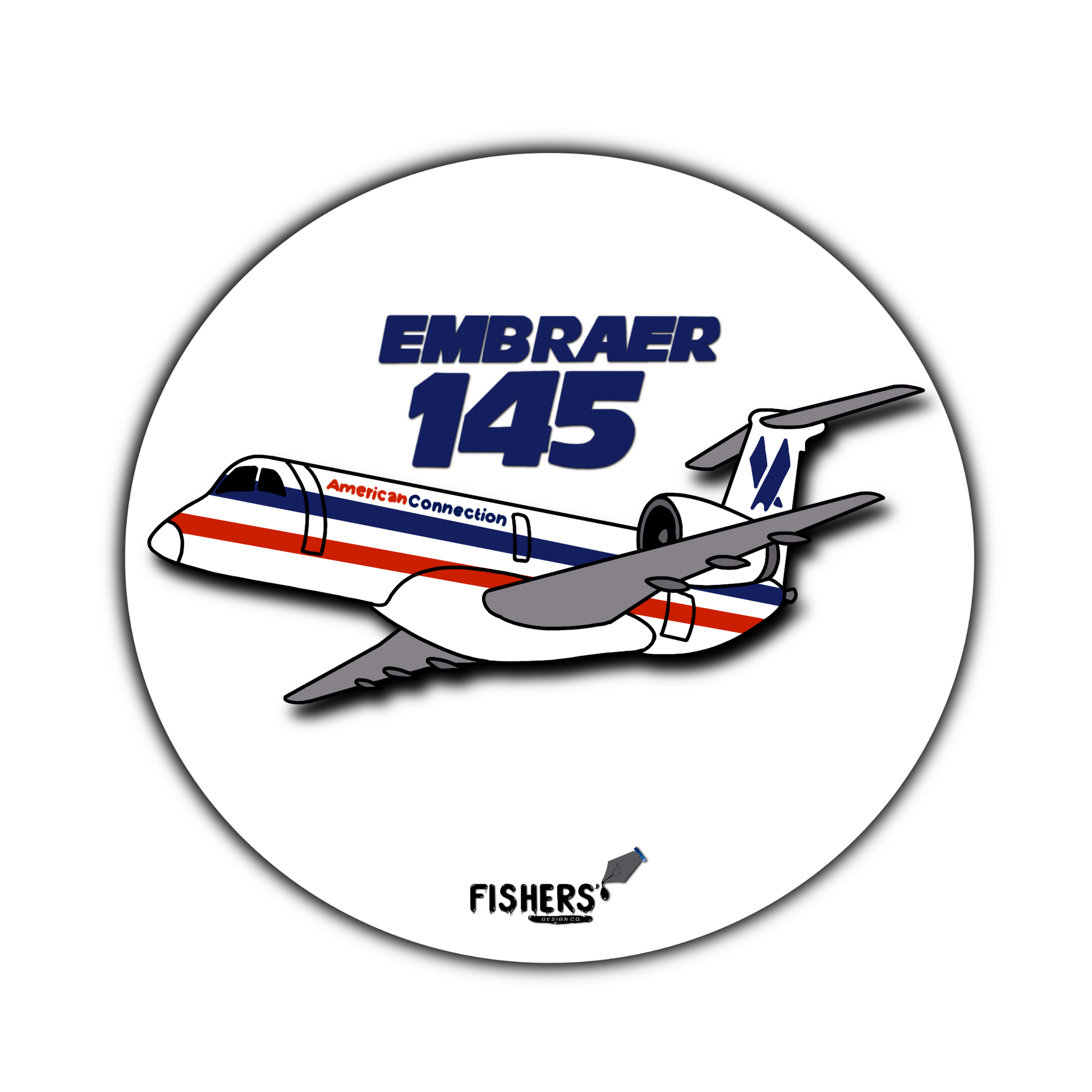 American Connection ERJ-145 3" Circular Cartoon Airline Stickers!
