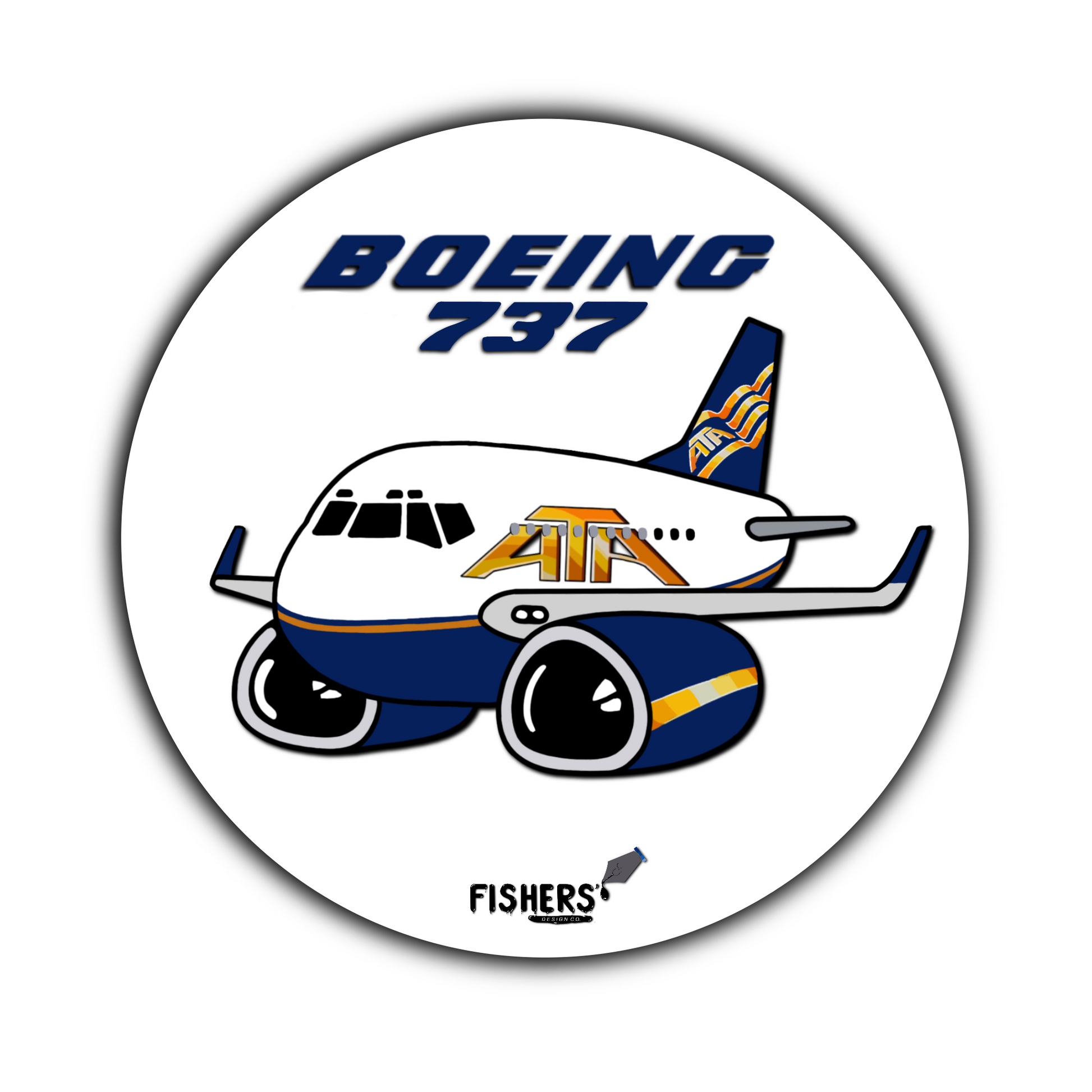 ATA Airlines 737 3" Circular Cartoon Airline Sticker!