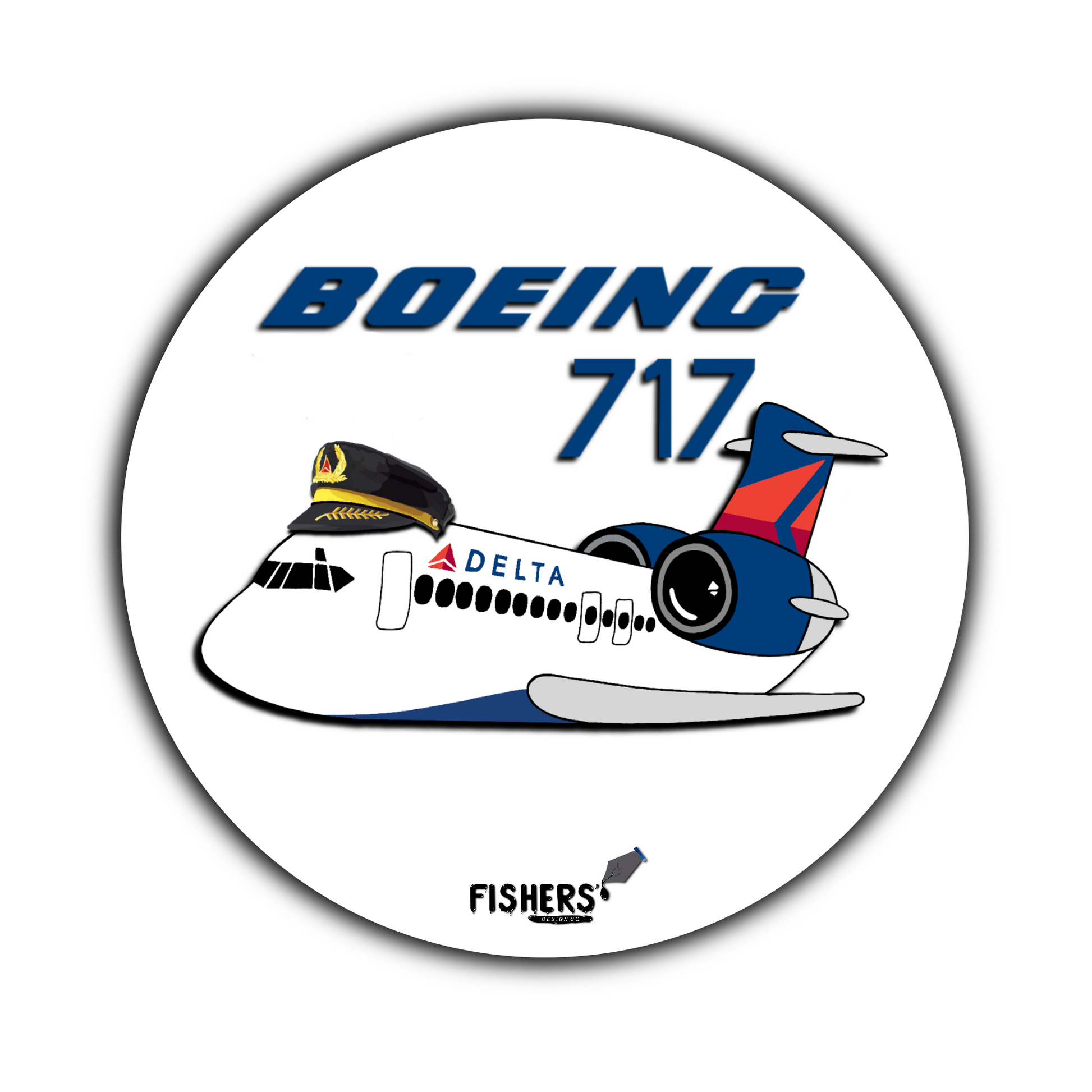 Delta Airlines 717 With Hat 3" Circular Cartoon Airline Sticker!