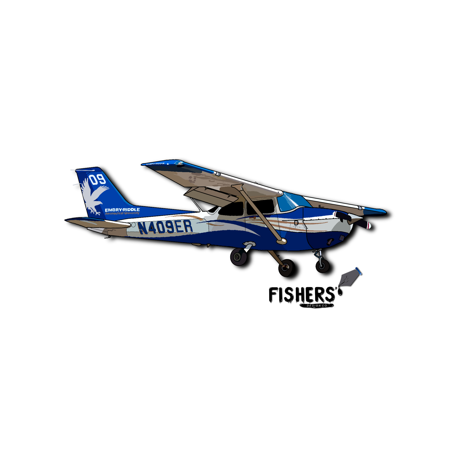 Introducing the Cessna 172S painted in the Embry-Riddle Aeronautical University livery. This design is printed as a 3 inch die cut sticker.