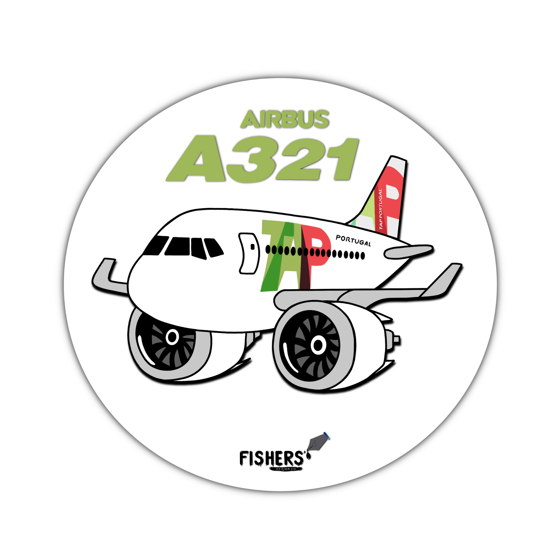 TAP Airlines A321 3" Circular Cartoon Airline Sticker!