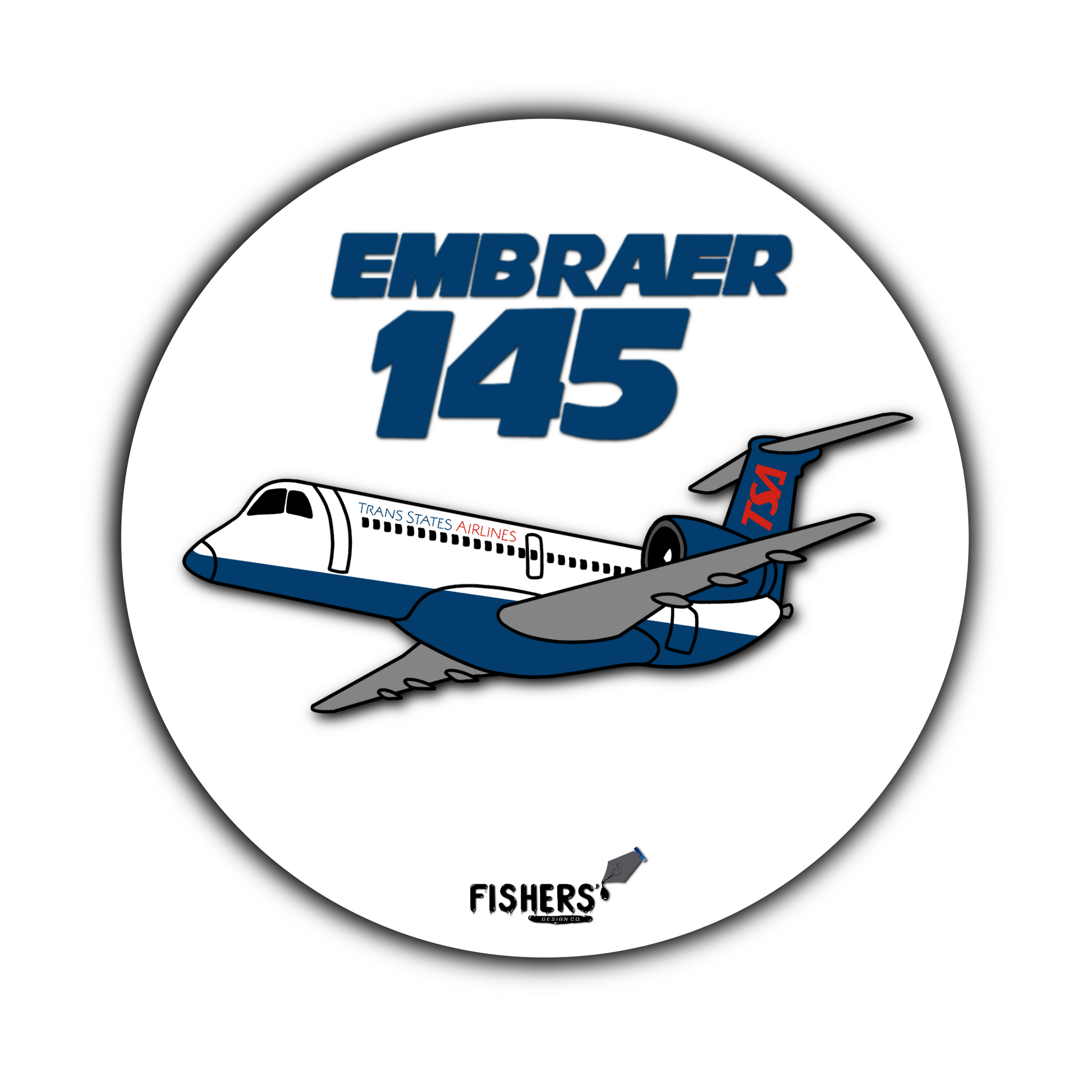 Trans States Airlines E-145 3" Circular Cartoon Airline Sticker!
