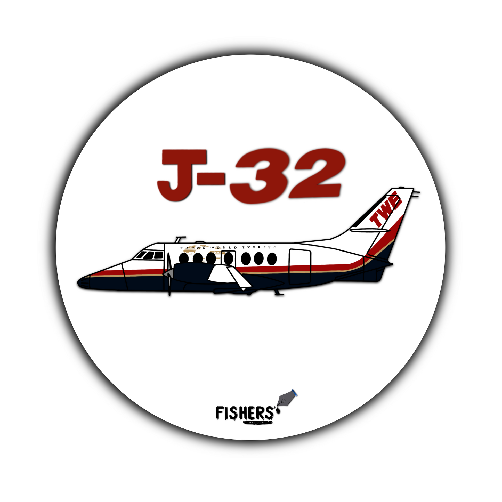 Trans World Express J-32 3" Circular Cartoon Airline Sticker!