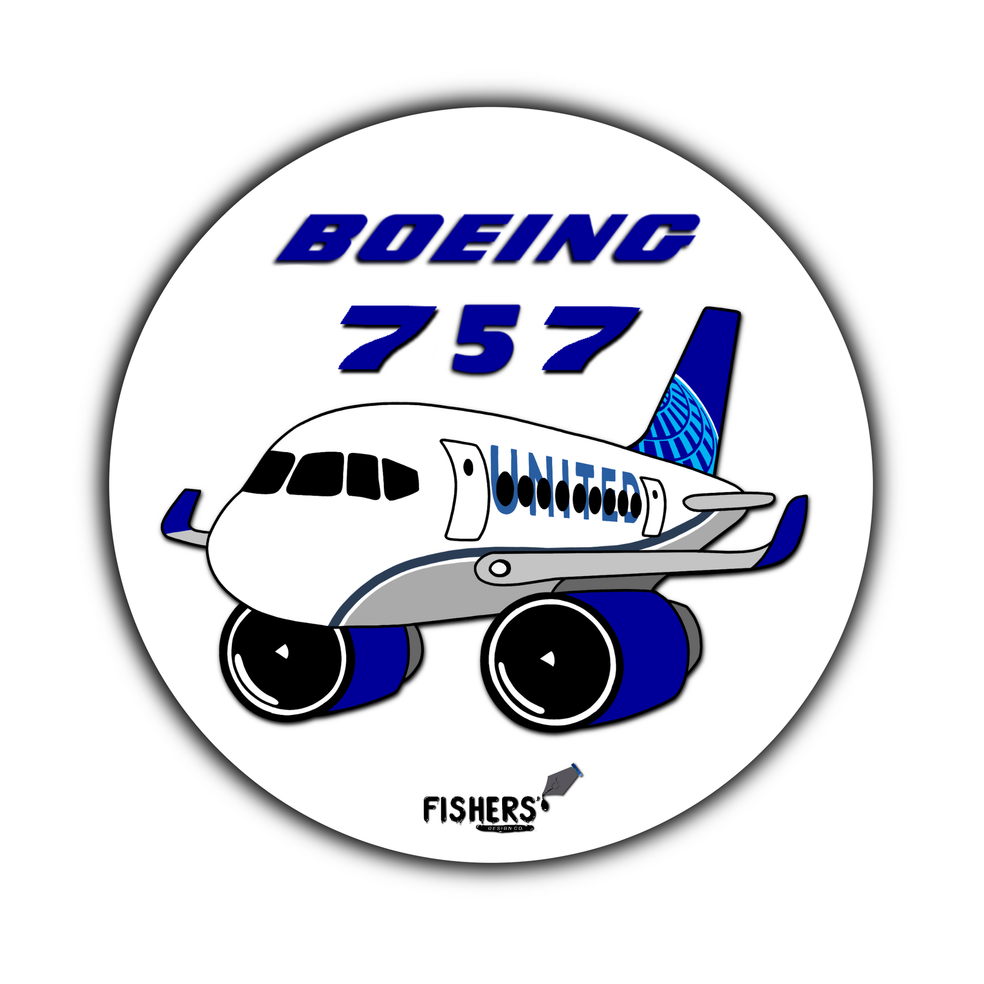 United Airlines 757 3" Circular Cartoon Airline Sticker!
