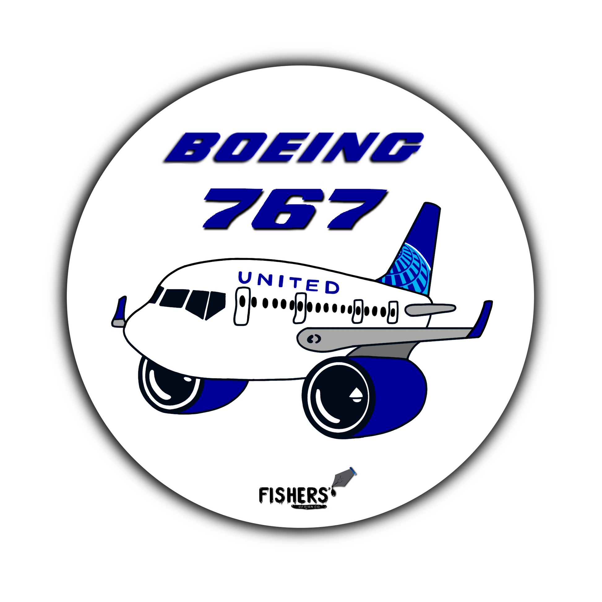 United Airlines 767 Circular Cartoon Airline Sticker!